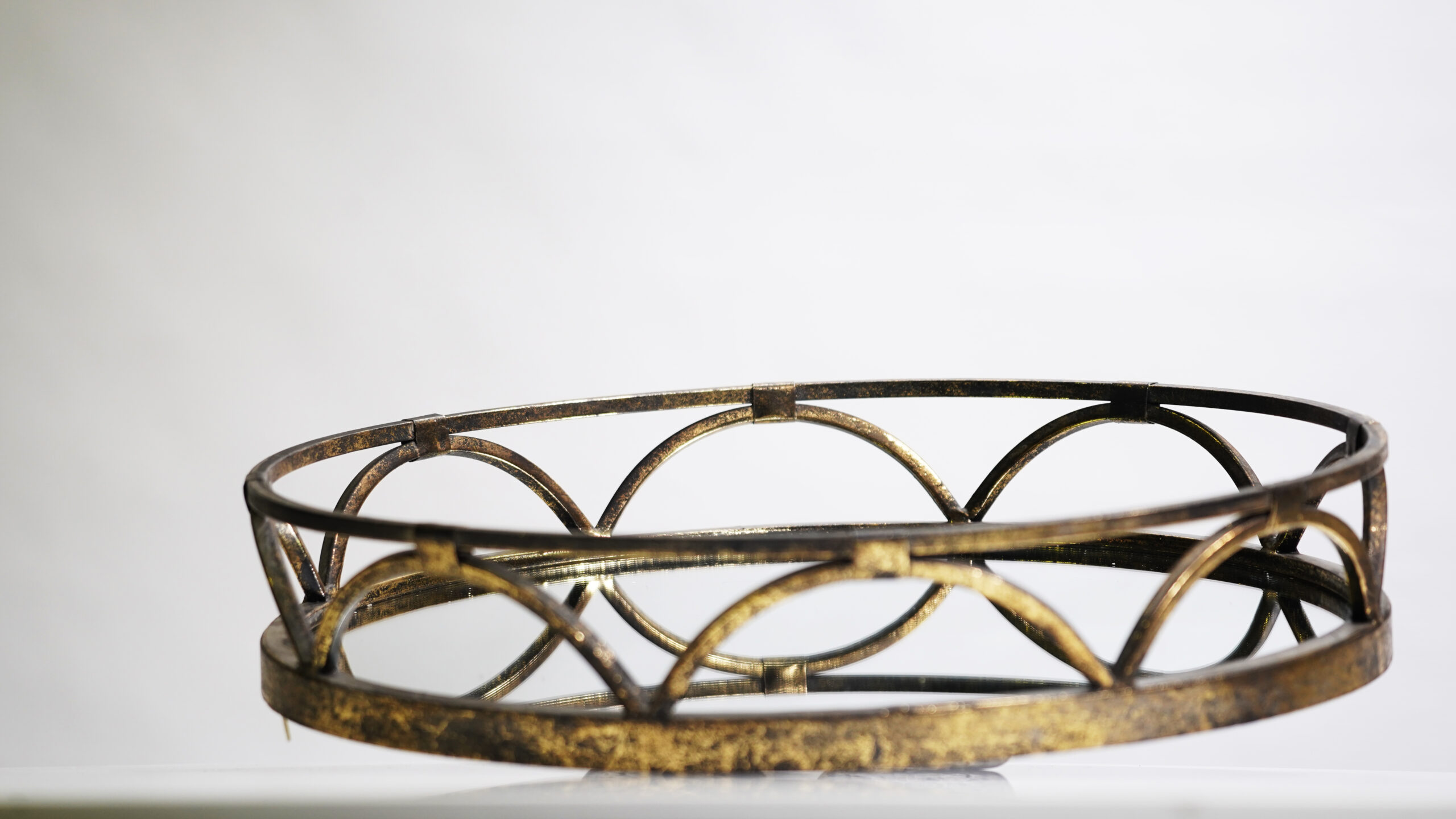 Round gold mirror tray